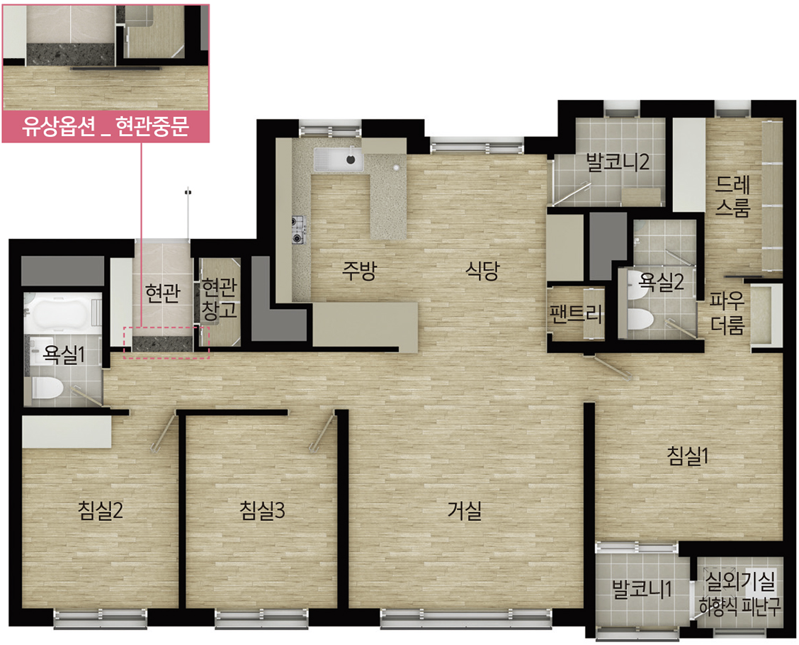 세대 평면도는 주택 개방감 확대를 위해 전 타입별 4베이로 기본 설계하였습니다. 59㎡, 84㎡, 99㎡ 모두 동일하게 4베이 설계로 이루어져 공간 활용을 극대화할 수 있다는 부분이 장점이라 하겠습니다. 다만, 전체 세대 중 약 8%에 불과해 희소성을 가지고 있는 99㎡의 경우 대형 평형의 장점을 살려 공간 활용도를 확대한 특화 설계가 기본 4베이 설계에 묻혀 있다는 점도 지적하지 않을 수 없다 하겠습니다.