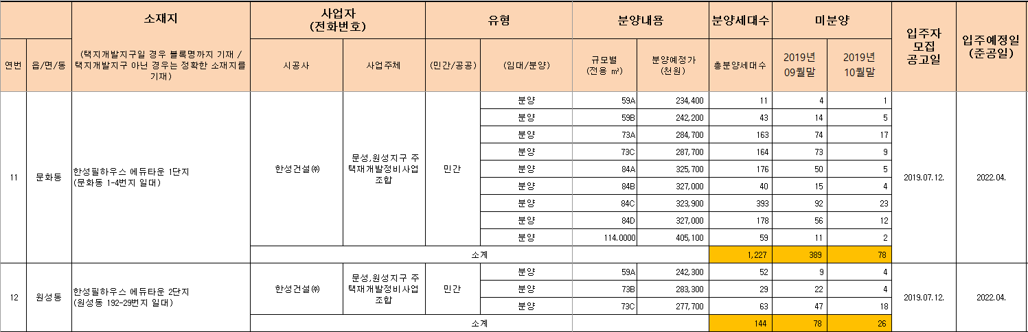 한성필하우스 에듀타운의 경우, 7월 미분양 이후 9월 추석 전후로 미분양이 급속하게 소진됨으로써 최근 완판된 것으로 알려지고 있으며, 통계 수치상으로는 9월 미분양 세대수가 1단지 389세대, 2단지 78세대에서 10월 1단지 78세대, 2단지 26세대로 크게 감소한 것으로 나타나고 있다. 하지만 아직 통계에 반영되지 못한 수치를 감안할 경우, 해당 미분양 수치는 크게 줄어들 전망이다.