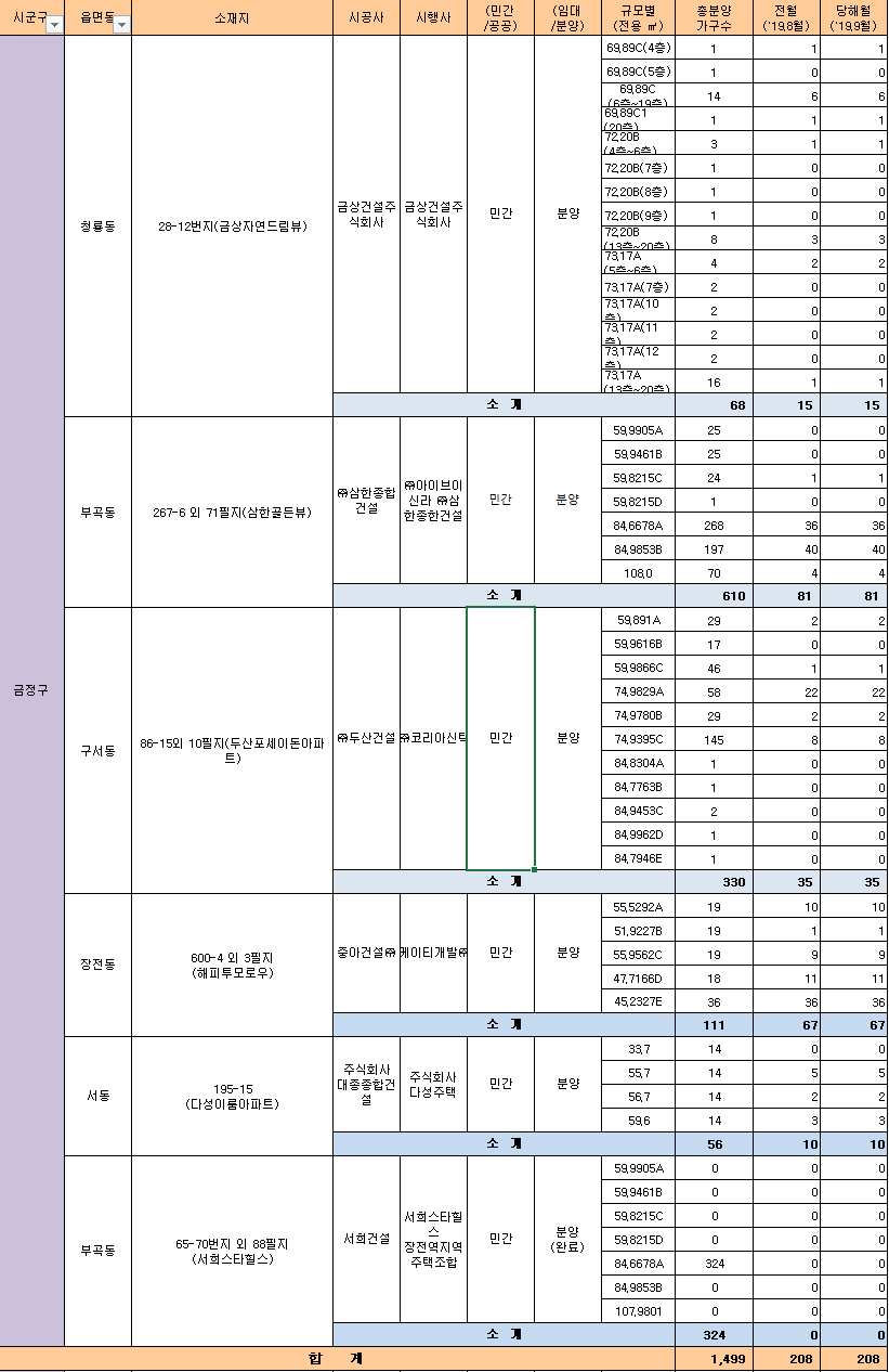 부산시 금정구의 경우, 부곡동 삼한 골든뷰 81가구, 장전동 해피투모로우 67가구 등의 미분양이 남아있다.