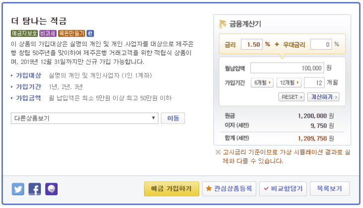 | 제주은행 특판 적금, 창립50주년 특판금리(최대 연 4.15%) (0) | 2019.05.01 |