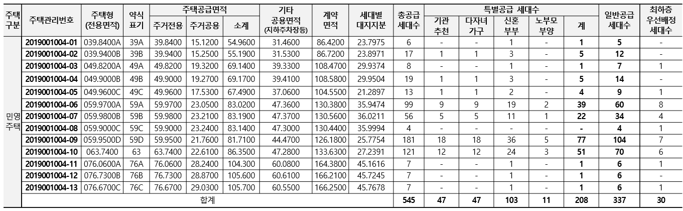 안양 아르떼자이 특별공급과 일반공급 세대수