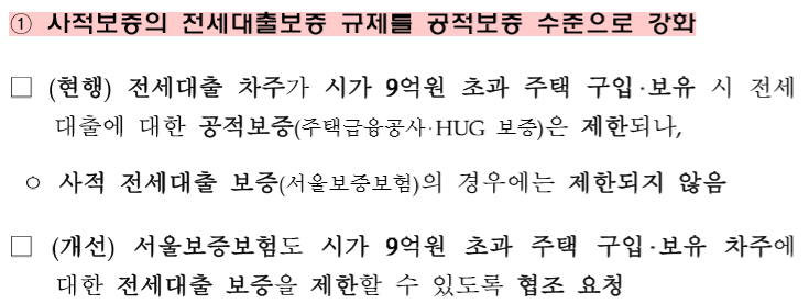 1. 전세대출 보증 규제를 공적보증 수준으로 강화