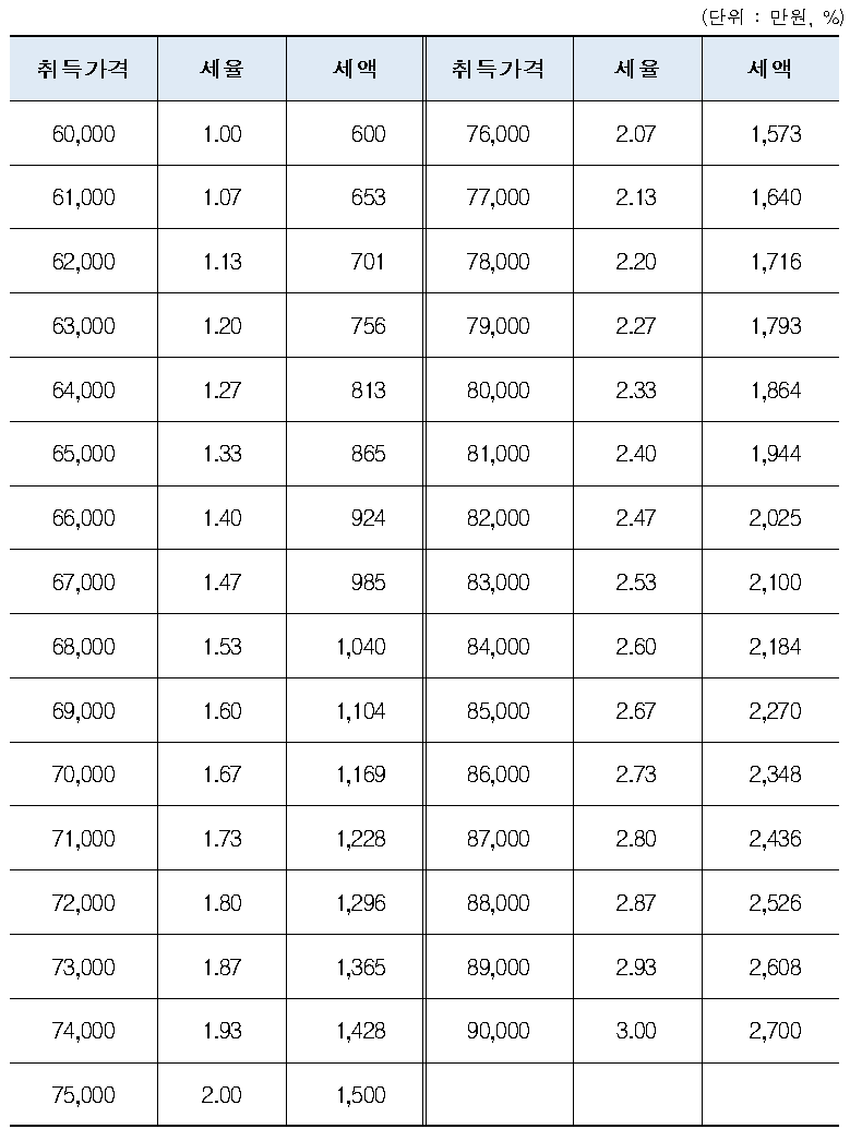 취득세율 계산법(2020년 이후, 6억원 초과~9억원 이하 주택)