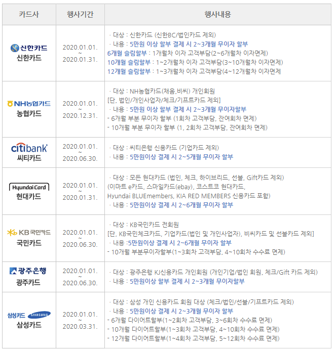 | 2020년 지방세 신용카드 무이자할부 카드 (0) | 2020.04.01 |