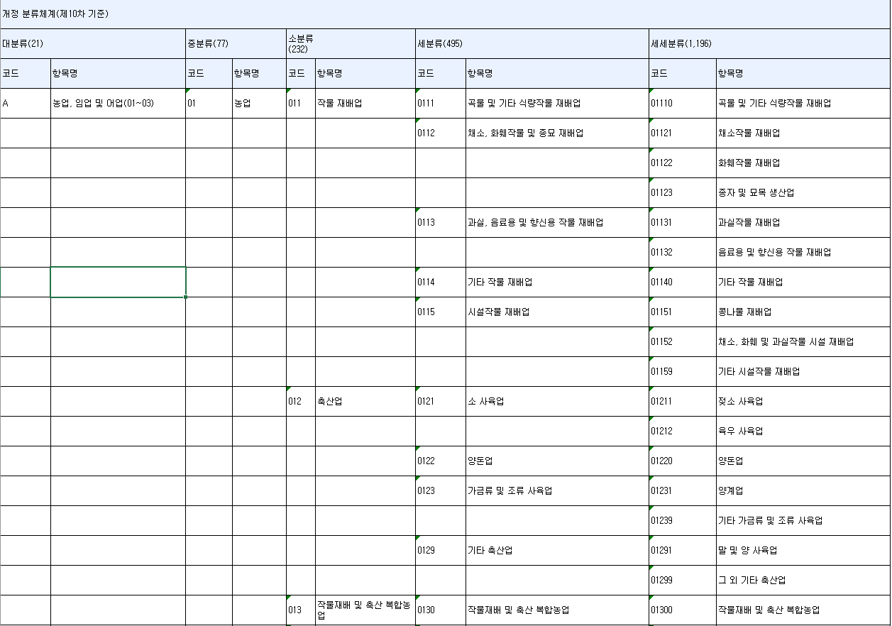 한국표준산업분류(KSIC)와 국세청 업종분류코드