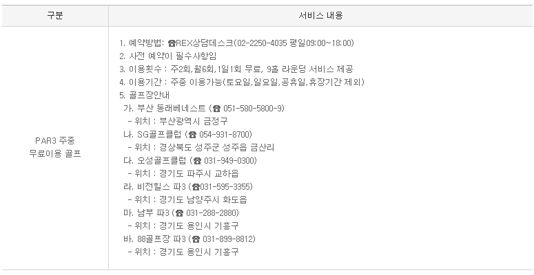 렉스카드 기타 혜택, PAR3 주중 무료 이용 및 BC투어 여행 혜택