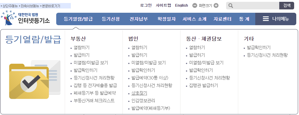 일단, 법인 설립 전 법인의 상호를 검색하고 법인 인감을 만들어 두는 것이 우선이다. 또한, 법인의 사업목적(업종/업태) 등을 사전에 깊이있게 논의 후 결정해 두는 것이 좋다. 법인 상호 검색과 법인 인감을 만드는 과정은 온라인에서 검색을 통해 쉽게 확인할 수 있다. 법인 상호는 인터넷등기소에서 직접 확인이 가능하므로 다음 화면을 참고해 중복되지 않는 법인의 상호를 찾아 설립할 법인의 상호를 직접 결정하면 된다.