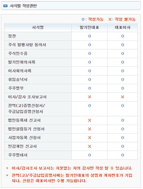 위의 해당 제출 서식들을 하나씩 선택해 직접 해당 내용들에 공란을 채워 작성해 주면 된다. 예를 들어 정관이나 발기인 회의사록의 경우 필수적으로 작성해야 하는 내용 외에 대부분의 내용은 자동으로 선택되어 정관과 발기인회의사록 등이 자동으로 작성된다.