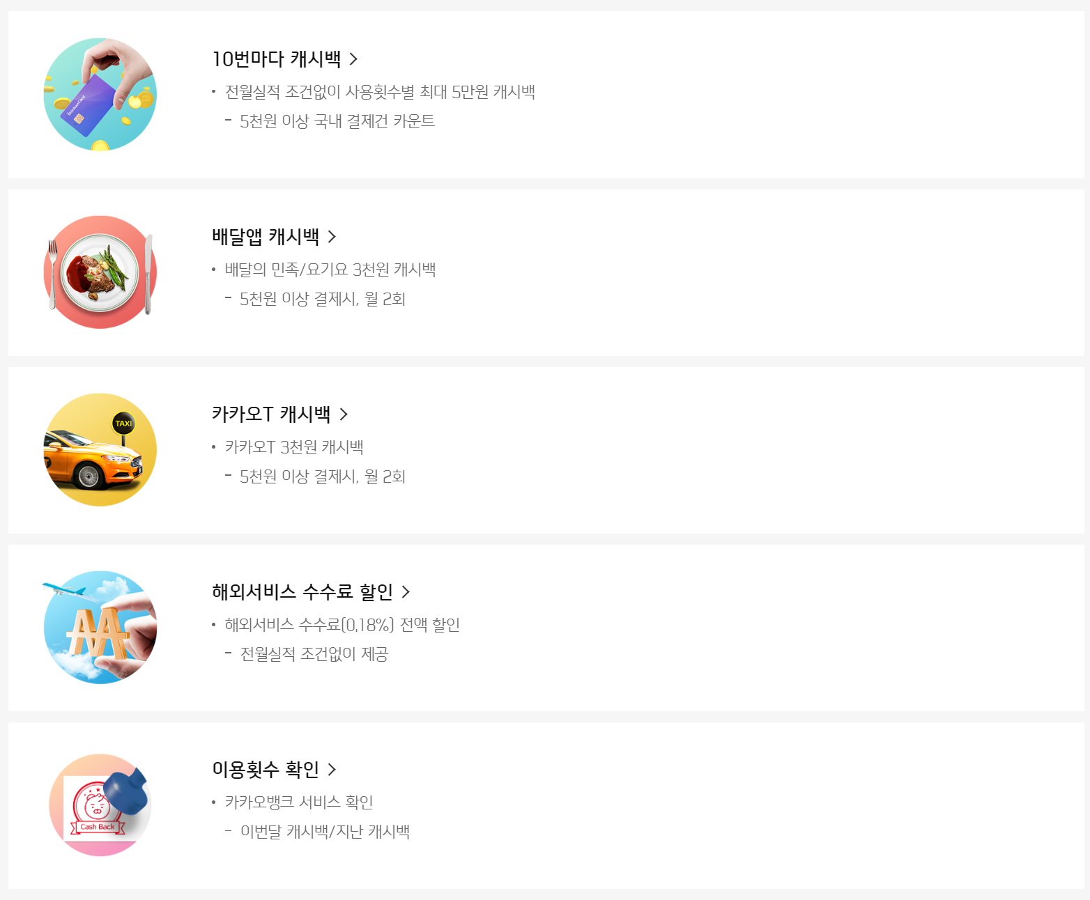 배달앱, 카카오T 캐시백 혜택 전월실적 조건