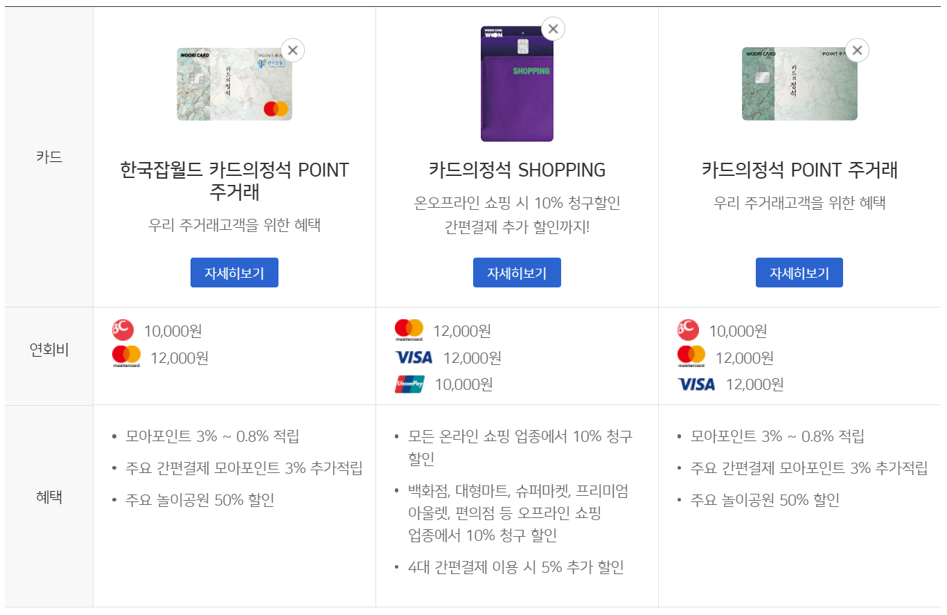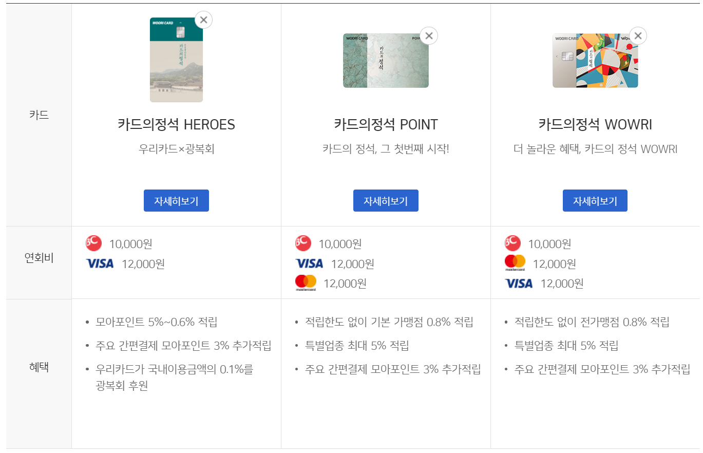 | 카드의정석 WOWRI | 0.8%(무제한) | 3% | 약 167만원 |